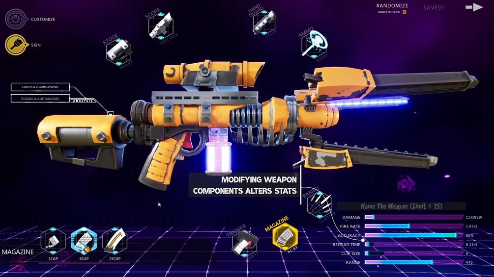 - 6: Six slots for saving multiple customized weapons, each with a unique name, and the ability to select two for in-game use.